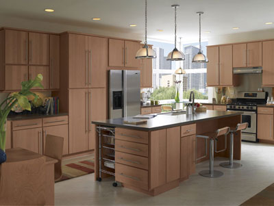 overlay, flat panel kitchen cabinets featuring slightly radiused